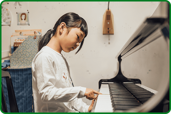 聴力と共に指先の筋肉が発達するお子さまの成長期は、楽器を始めるのに一番良い時期です。メロディ・リズム・ハーモニーの3要素が身につくと同時に、トータルな音楽を構成する力が養えます。一人ひとりに合った教材を用意しますので、音楽の基礎から中~上級のテクニックまで、お子様の成長に合わせて楽しく学ぶことができます。また、「ヤマハのグレードテスト」「発表コンサート」などで上達の過程を確認できますので、初めてのお子さまにも最適です。